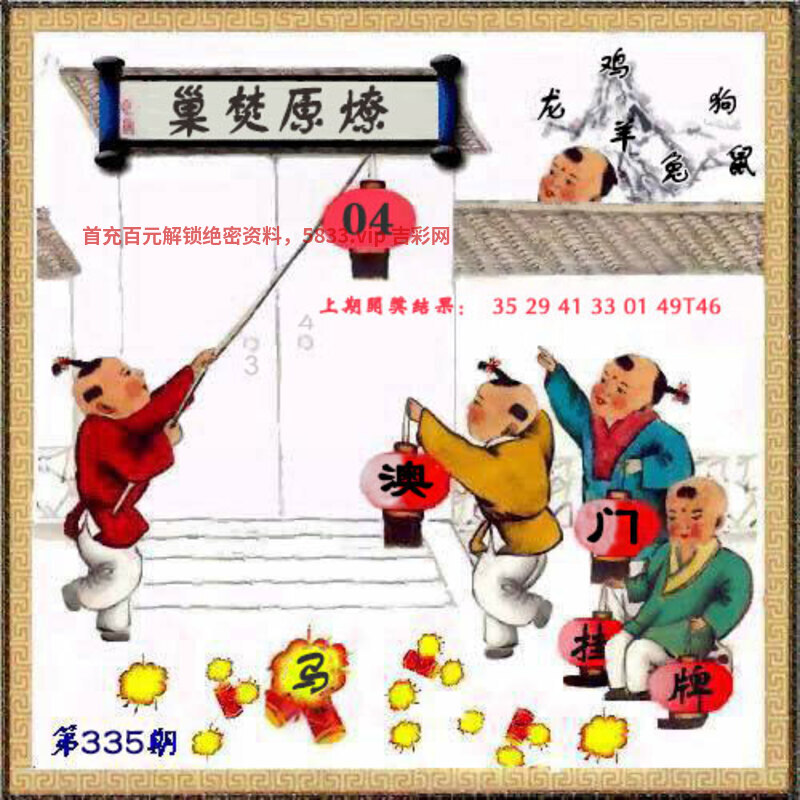 | 335期挂牌《巢焚原燎》 解释:变为煨烬描绘都城遭战火摧毁的景象 解料:遭战火摧毁解战肖虎狗牛马,火肖蛇马,挂:04 爆:马 七肖:虎马狗牛蛇鸡猴 |